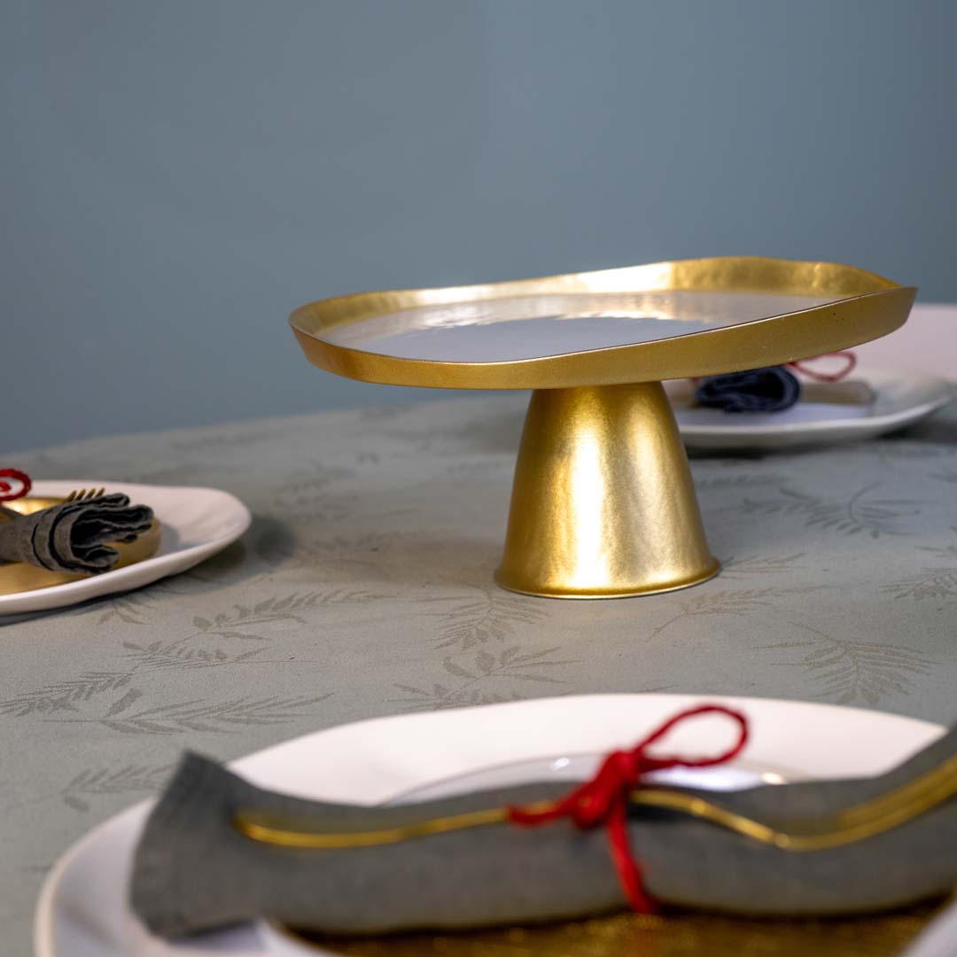 Kuchenständer aus farbigem Glas. Dank der unregelmäßigen Form und leuchtender Farbe eignet er sich hervorragend zum Servieren von Desserts und Vorspeisen und verleiht Ihrer Tafel eine festliche, elegante Note