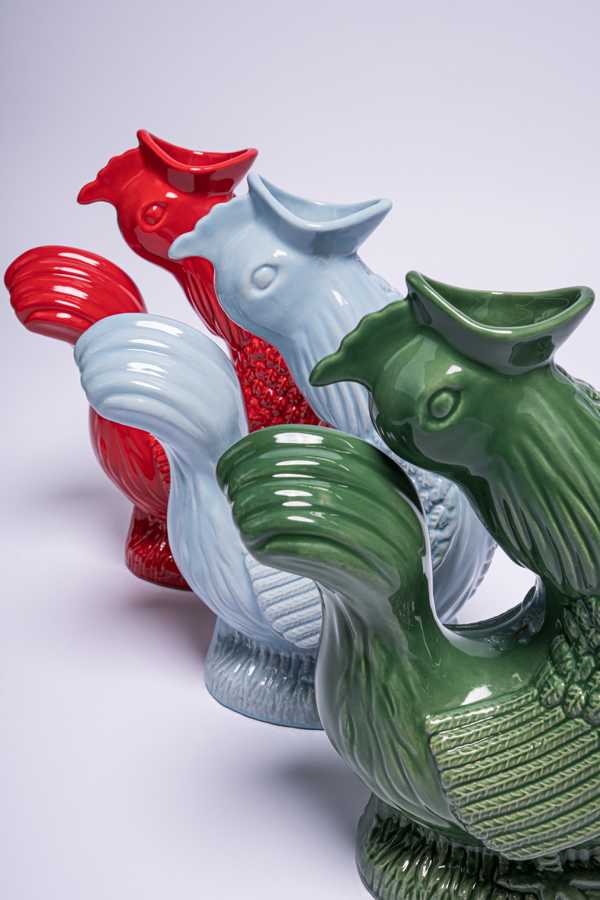 Gefertigt aus hochwertiger Keramik und mit viel Liebe gestaltet. Der glucksende Hahn ist ein praktischer Wasser- oder Saftkrug, aber auch ein echter Blickfang.