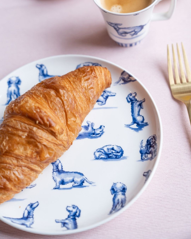 Dieser Frühstücksteller aus Porzellan wird Ihren Tag bestimmt verschönern. Der verspielte Dackel "Nhaan" folgt seiner Besitzerin, Janny van der Heijden überall hin und hat einen eigenen Instagram Account. Jetzt hat dieser bezaubernde Hund seine eigene Geschirrkollektion. Hier rennt, springt, purzelt und rollt "Nhaan" über den Teller.