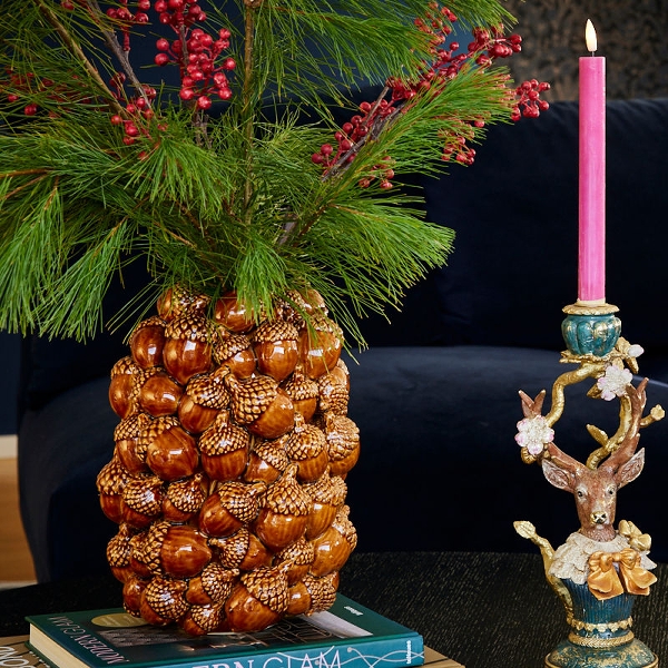 Diese Keramik Vase mit Eicheln kombiniert Eleganz mit natürlichen Design.