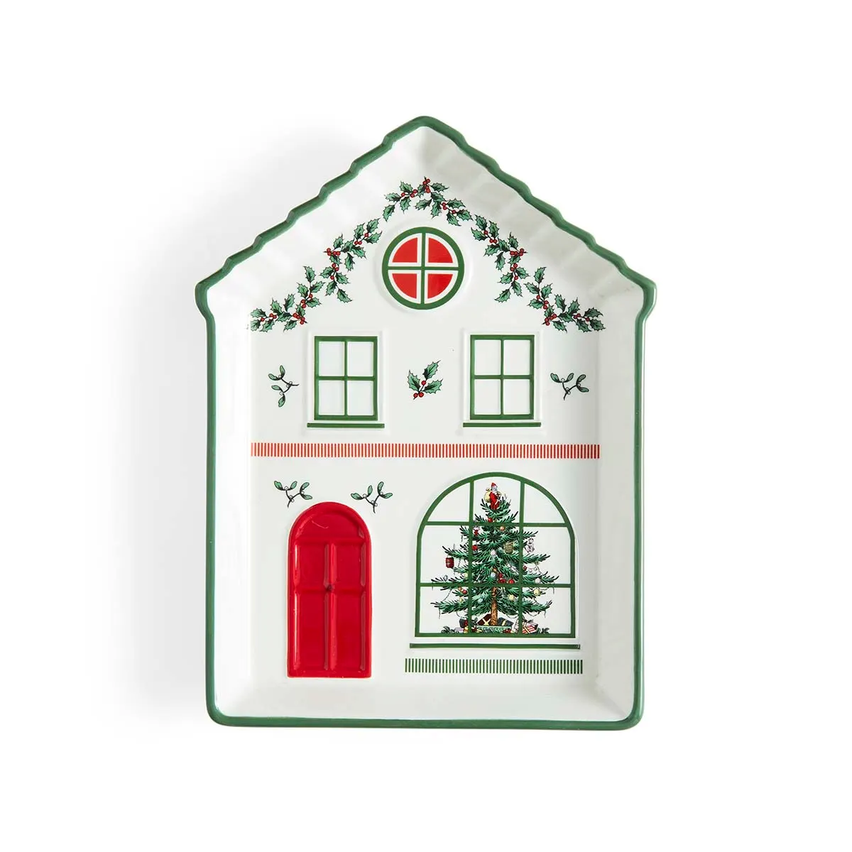 Dieser Keramikteller / Keramik-Servierplatte in Form der Vorderseite eines festlich geschmückten Hauses gestaltet, eignet sich perfekt um Ihrer Tafel einen festlichen Touch zu verleihen.